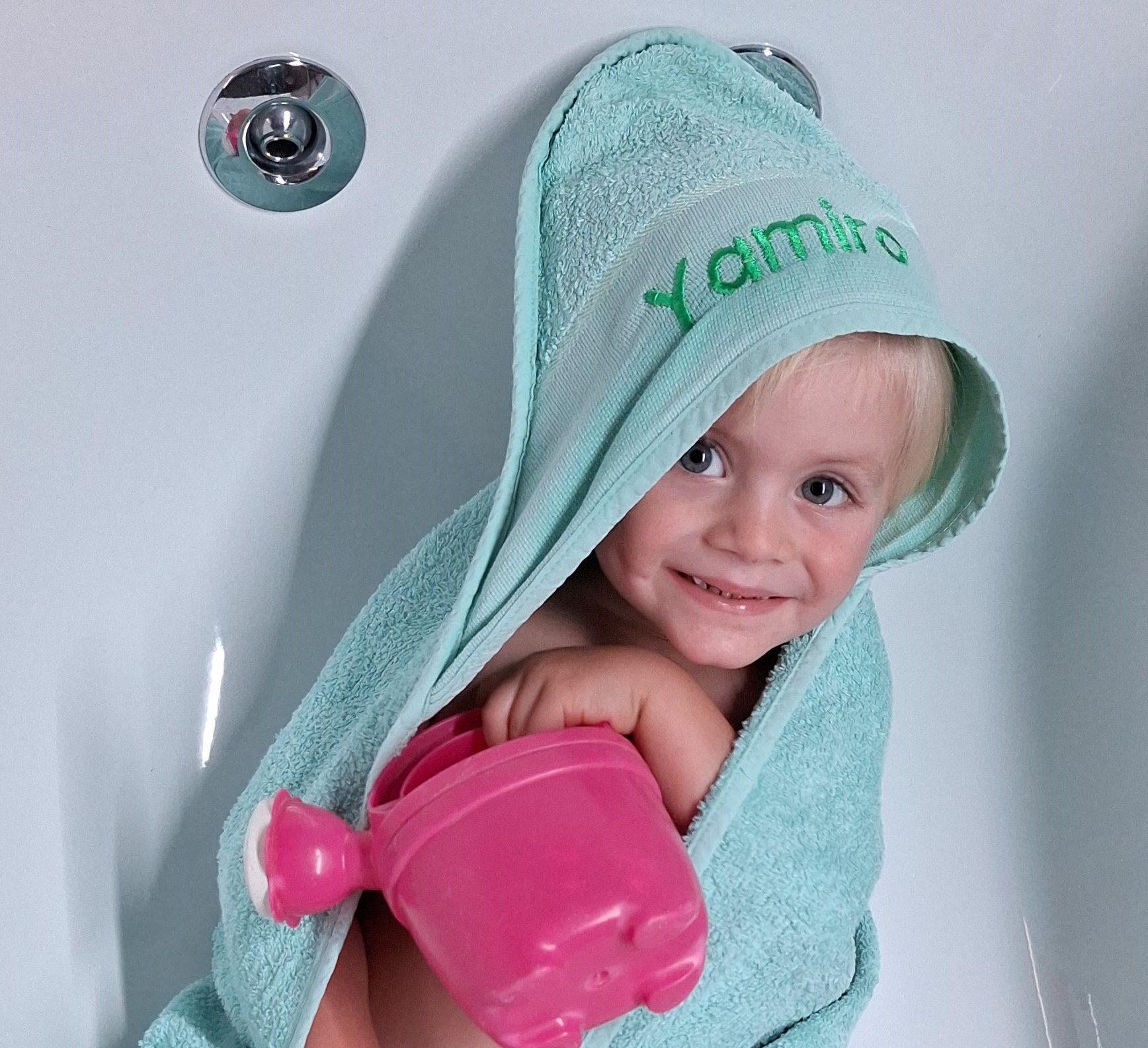 Kinder Kaputzetüächli, Kinder Frotteeponcho oder Hand-Badtücher chasch du z.B. hie usläse und d'Bstellig a mi schicke.
